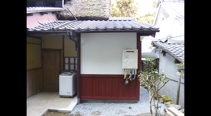 白塗りの壁と紅殻色を基調とした外観にリフォーム。